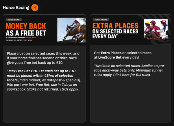 On selected races throughout the week, LiveScore Bet offers money back in the form of