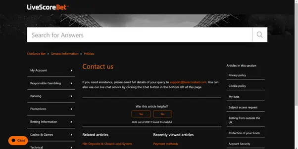 If you prefer to seek assistance through email, this is also a possibility at LiveScore Bet, with their email address being able to be found on their contact page. It is this same portion of the platform that also contains a series of FAQs and detailed articles that allow users to sift through and easily find any answers they may be seeking.