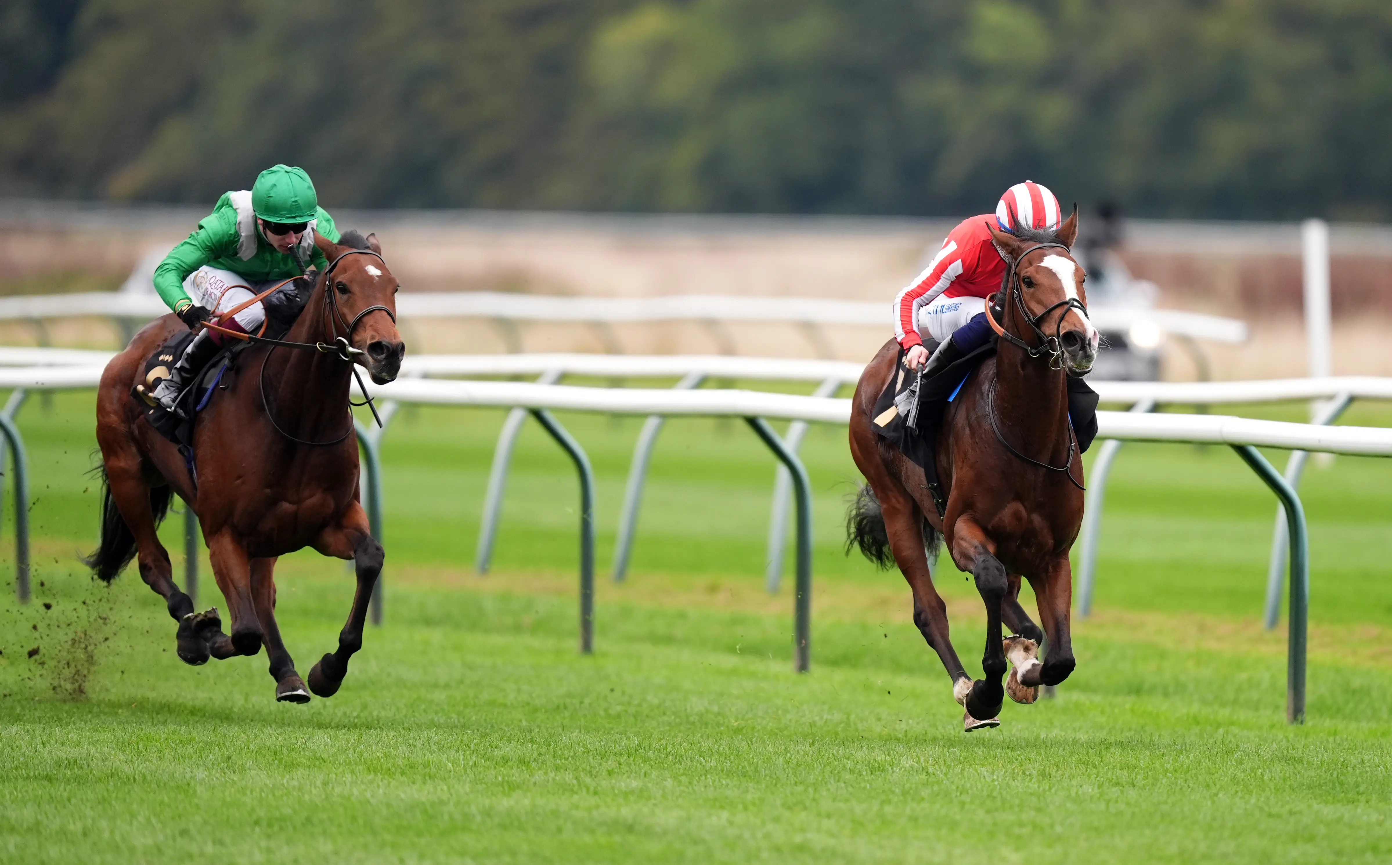 Return To Unit (right) scorches up the Nottingham straight (Mike Egerton/PA)