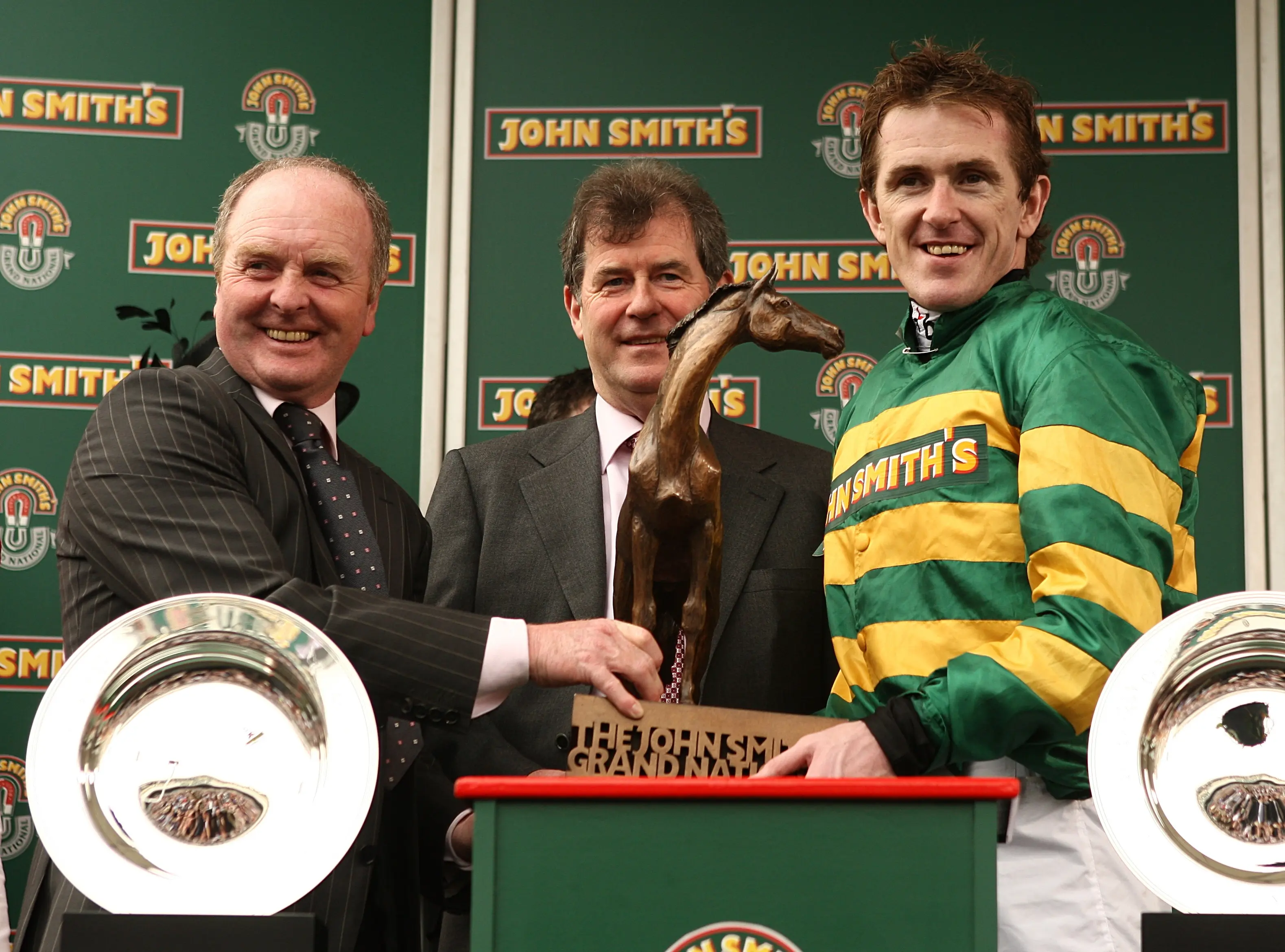 Jonjo O’Neill with JP McManus and Tony McCoy after winning the Grand National with Don’t Push It (David Davies/PA). “AJ will bring so much to the new partnership, new energy and new ideas and he has always been an excellent horseman – but then I would say that, wouldn’t I?