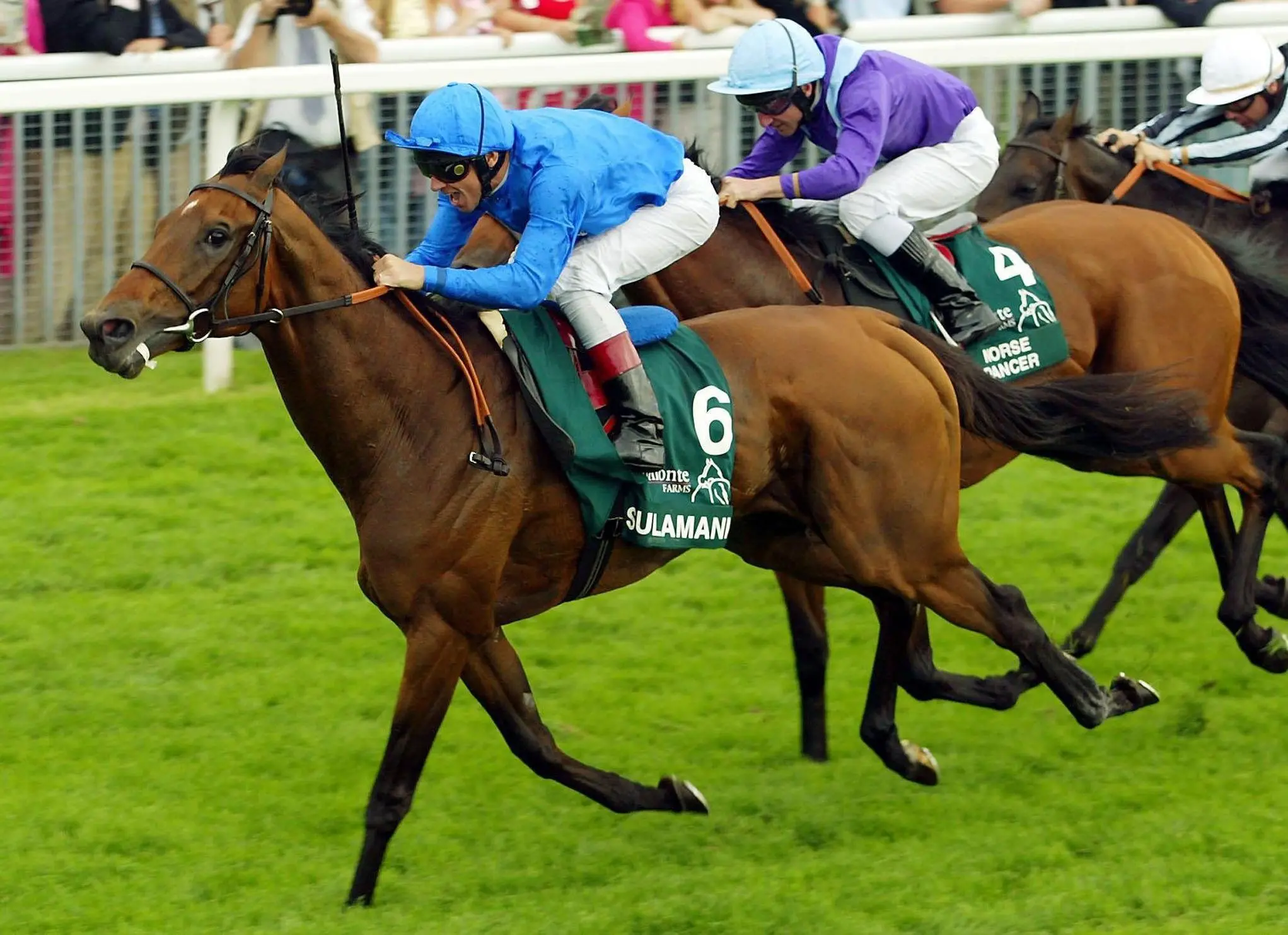 Sulamani holds off Norse Dancer to win the Juddmonte, ironically beating a son of Halling (Gareth Copley/PA) Sulamani’s story was slightly different, having won the French Derby for Pascal Bary.