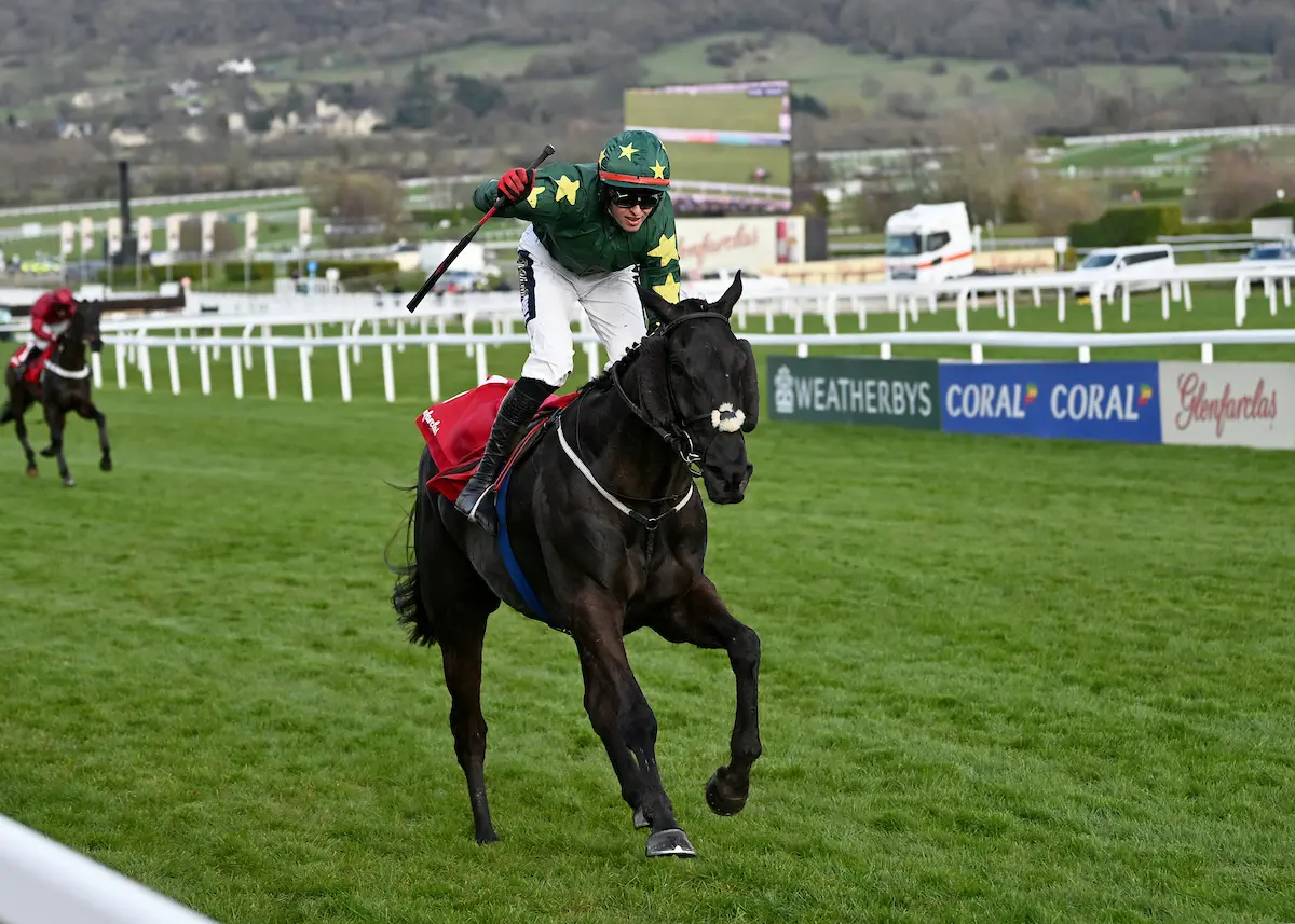 Always travelling strongly close to the pace, he jumped into the lead at the 20th obstacle of 30 and really quickened the pace five jumps from home to run out a brilliant 17-length winner from Cheltenham Festival legend and Grand National hero Tiger Roll in second (8-11F) with Out Sam (33-1) a further 18 lengths back in third.