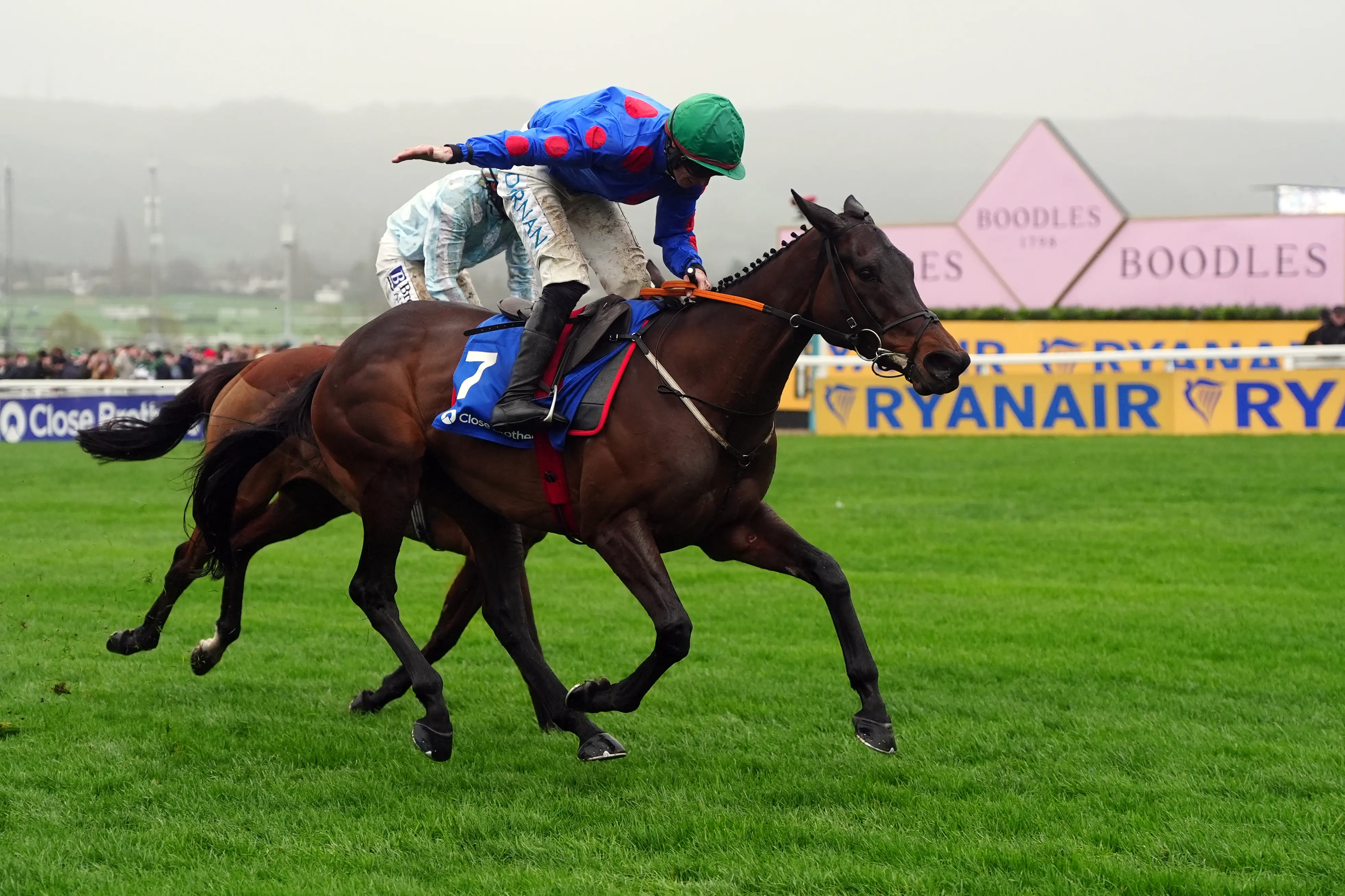 Wodhooh fended off Willie Mullins’ Jade De Grugy at Cheltenham in the Mares’ Hurdle, with the pair five lengths clear.