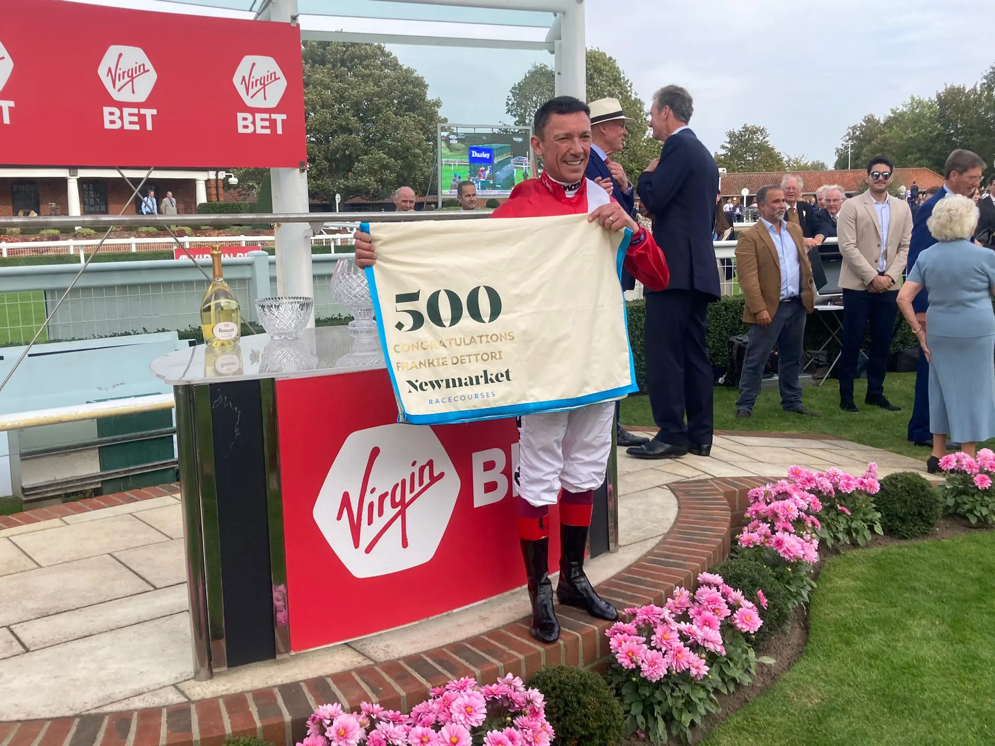 Frankie Dettori celrbrates 500 winners at Newmarket after yesterday