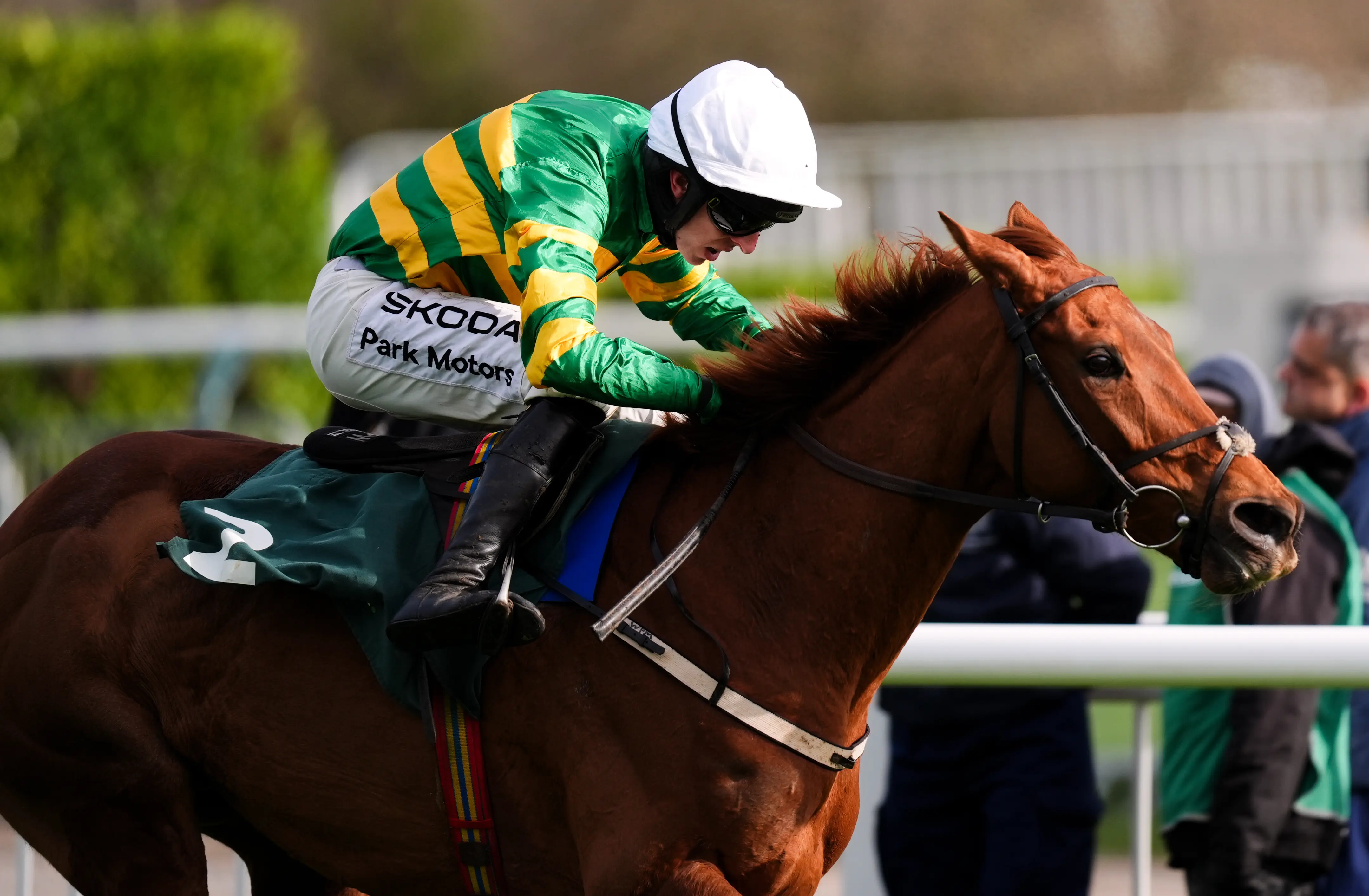 In the end victory was assured from some way out, with Dinoblue brushing aside the runner-up, Gavin Cromwell’s Only By Night, with ease up the hill to cross the line a length and a quarter ahead. Panic Attack was third for Dan Skelton.