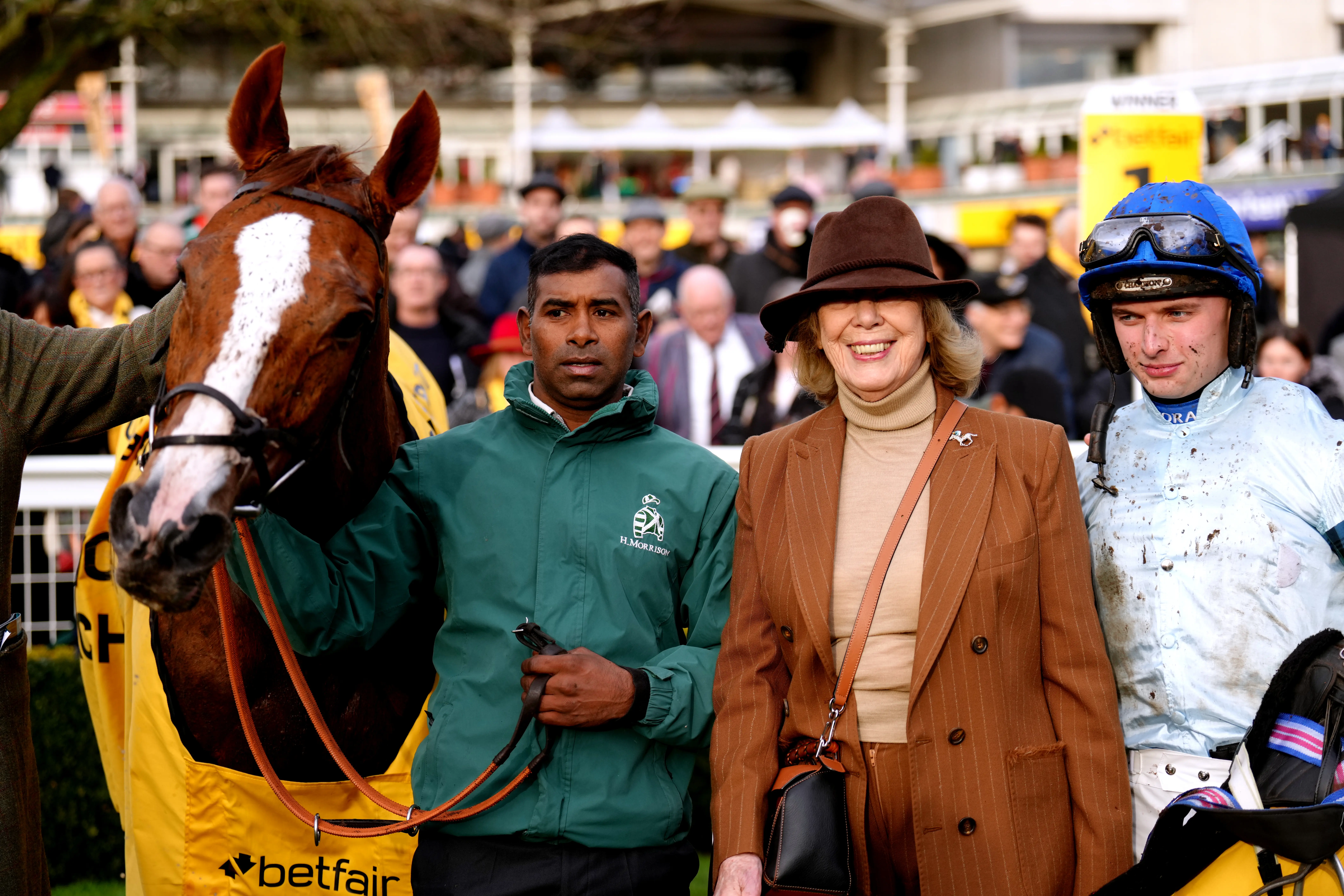 Not So Sleepy with owner Lady Blyth and jockey Sean Bowen after his Fighting Fifth win at Sandown (John Walton/PA) Not So
