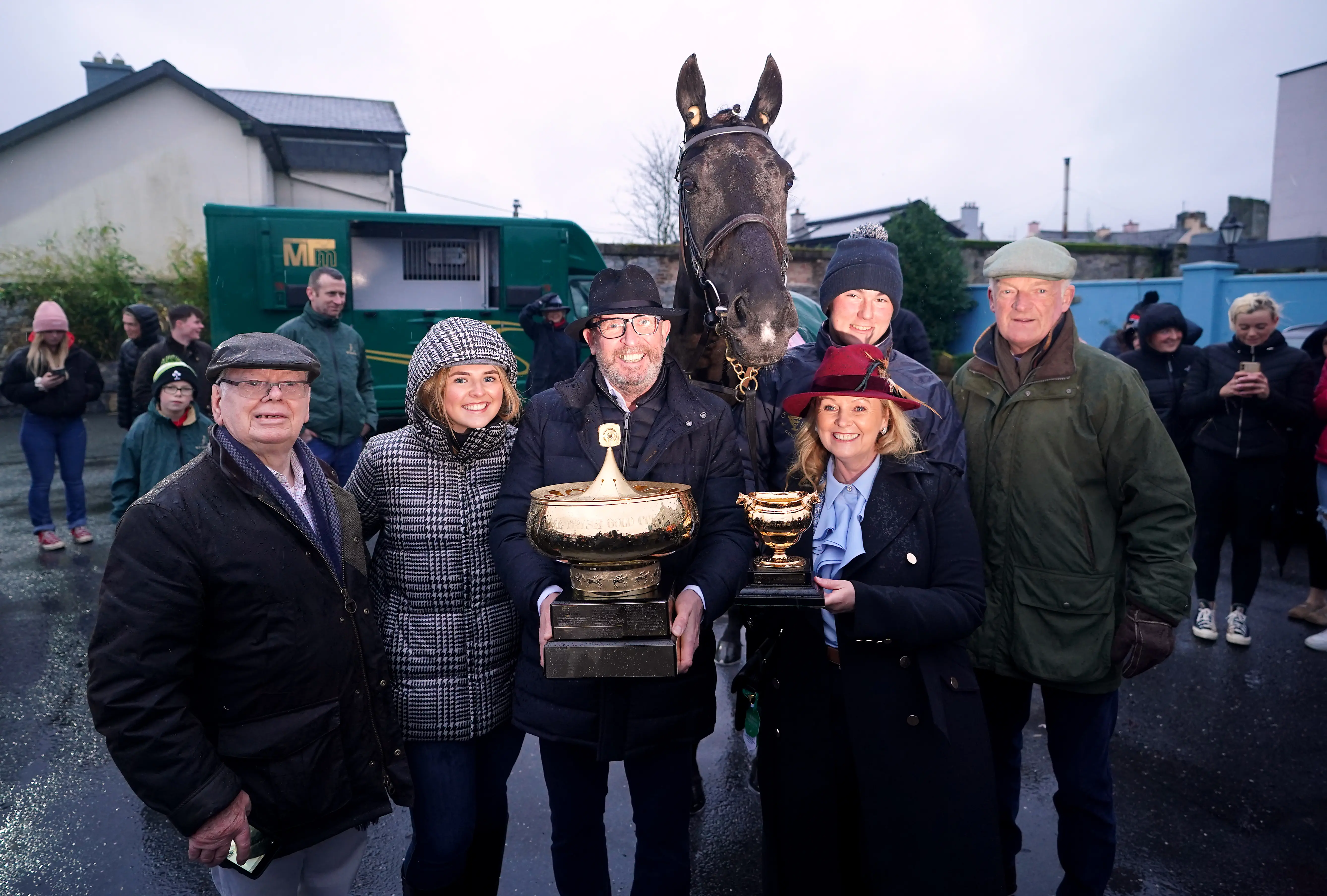 Just as they did after Al Boum Photo’s first triumph four years ago, the Leighlinbridge locals turned out in force to give Galopin Des Champs a hero’s welcome, with Mullins, Townend and owner Audrey Turley also on hand to receive the acclaim of the crowd.