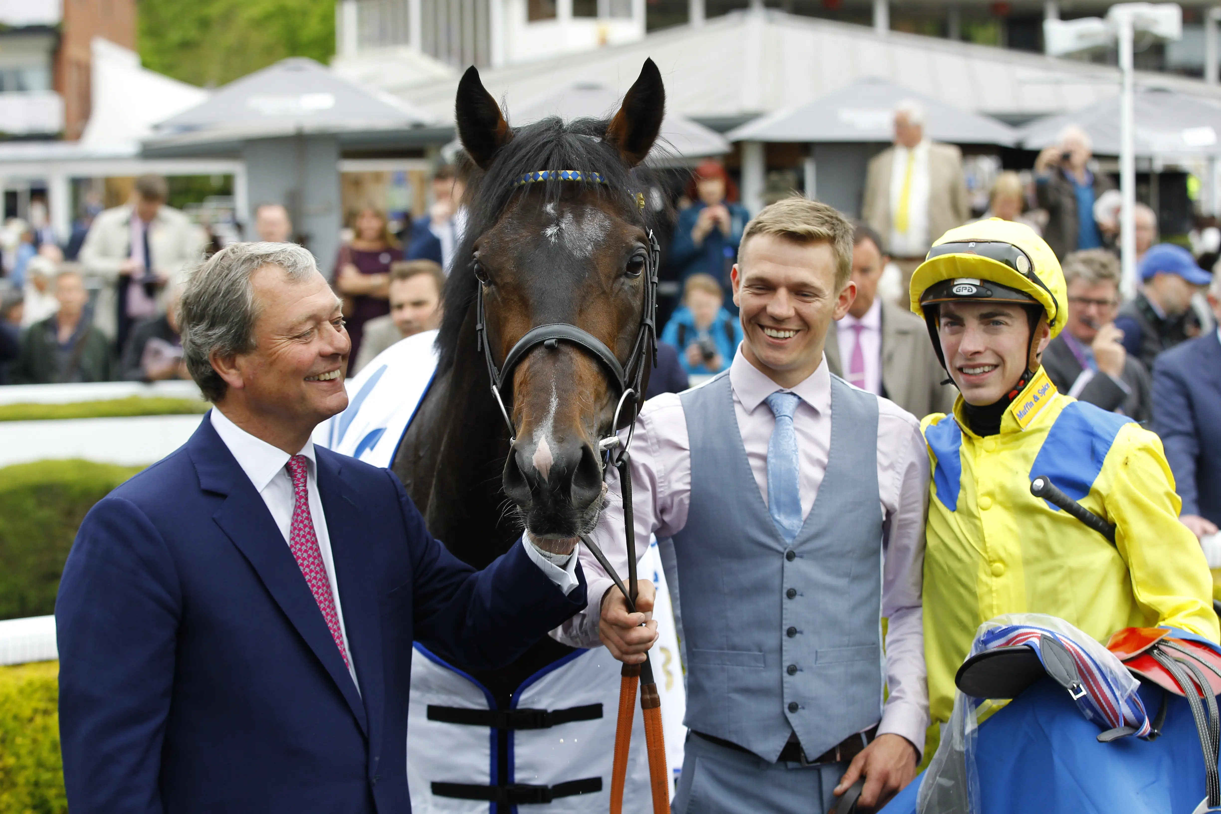 Haggas, left, looks admiringly at Young Rascal after his Chester Vase success (Racingfotos)