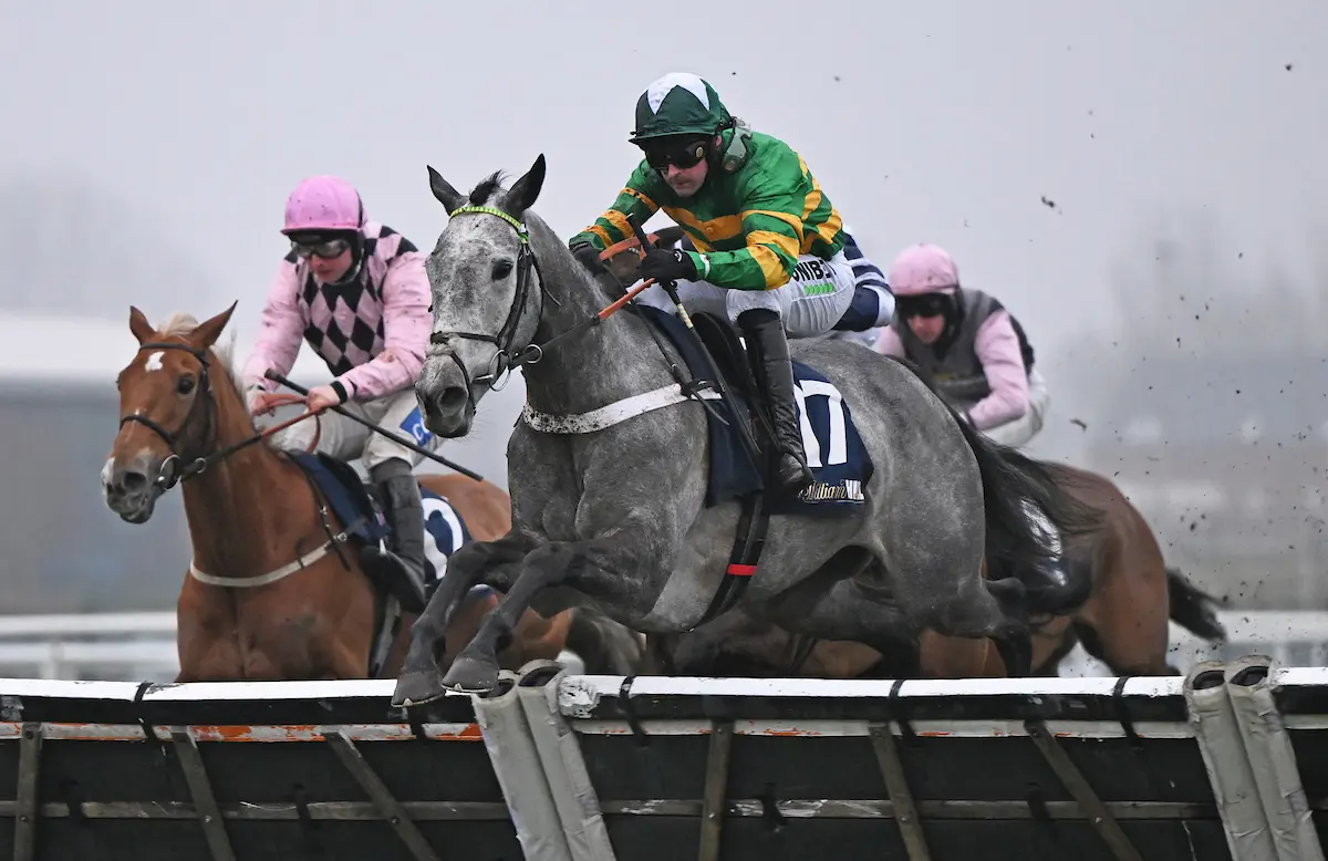 Henderson claimed the feature handicap, the William Hill Hurdle, for the seventh time in his career and for the second year in a row. Last year's winner Iberico Lord ran moderately, but Joyeuse - who also runs in the green and gold of JP McManus - travelled like a dream throughout and plotted a similar route under Nico De Boinville to last year’s winner. She travelled into the race stylishly and stayed on powerfully, suggesting she’s a young mare very much at the right end of the handicap.