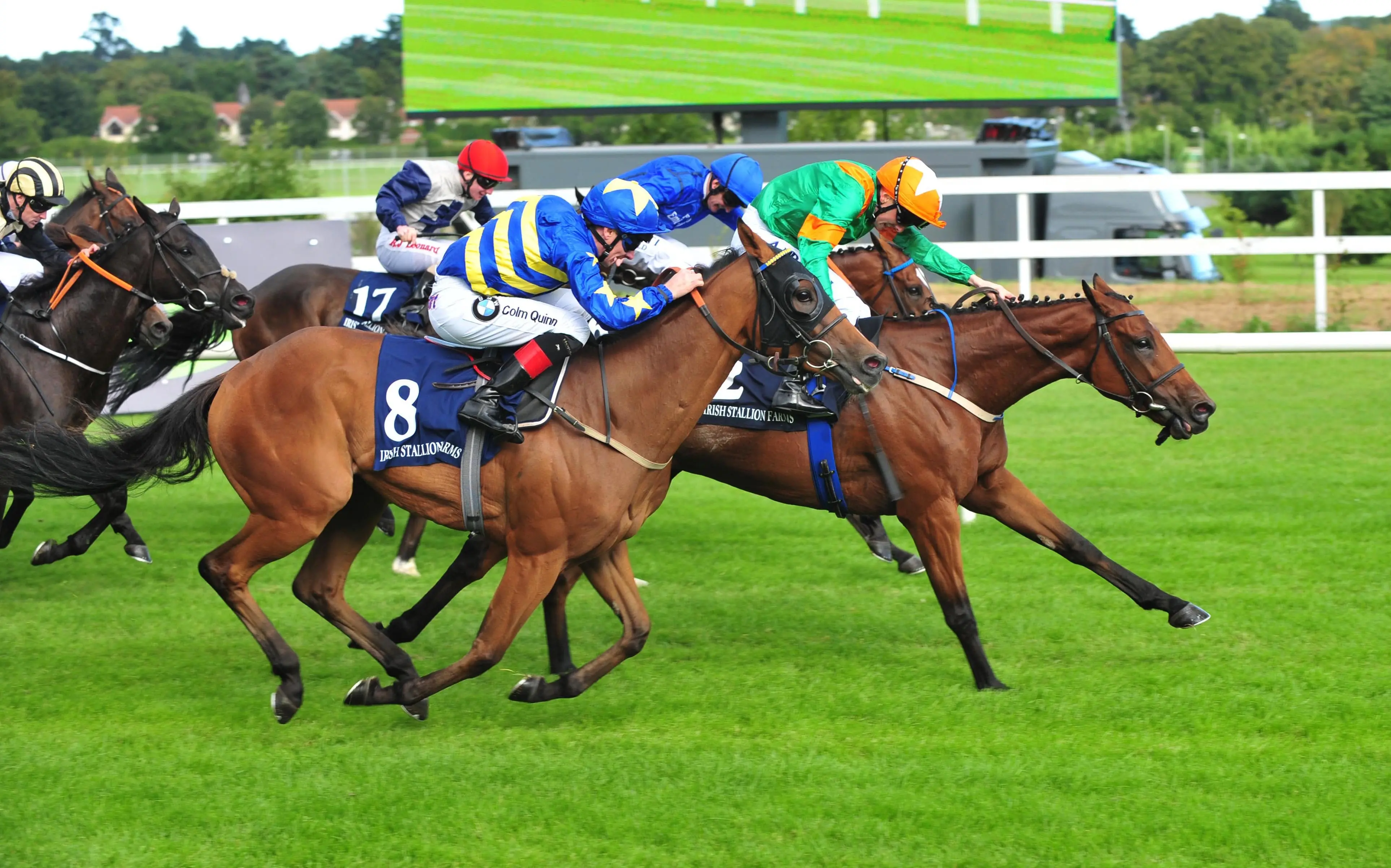 St Stephens Green and Clongowes had the run of the race up front, but the pack closed in fast in the final furlong, with Laws Of Spin (14-1) steaming home under Chris Hayes.