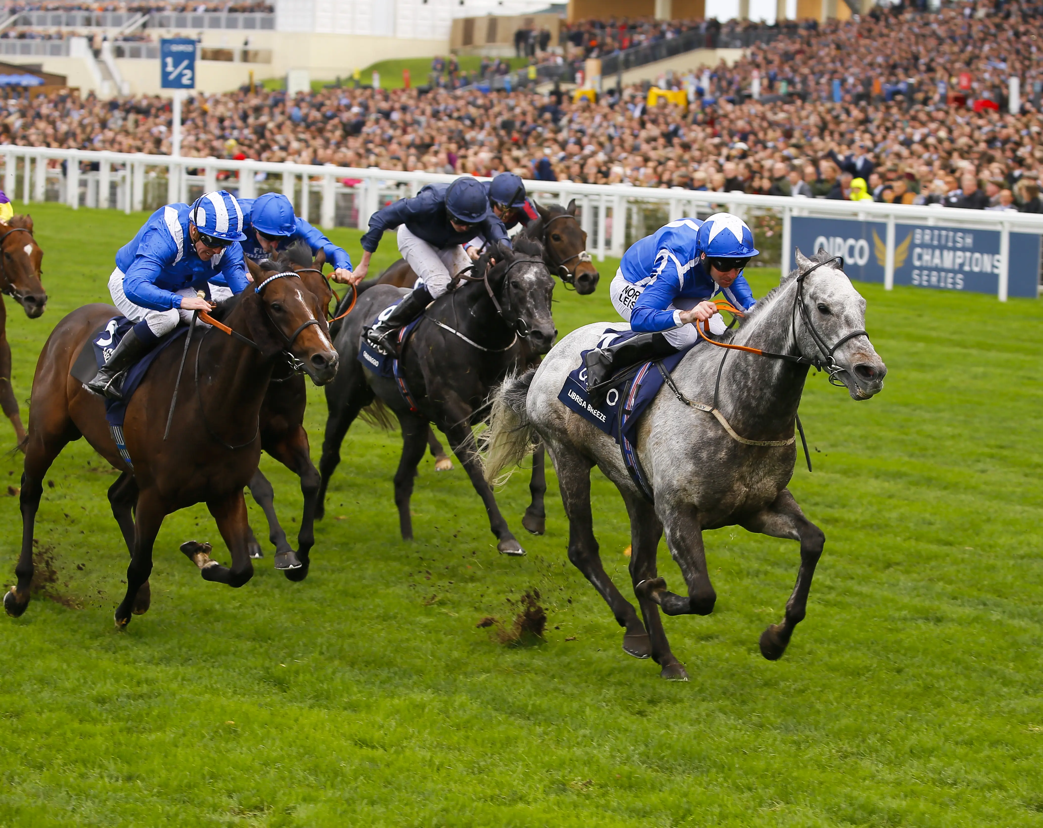 Owned by Tony Bloom, who is the chairman of Brighton & Hove Albion and won the Cesarewiitch last week with Withhold, Librisa Breeze obliged at 10-1 under Robert Winston, beating Tasleet by a length and a quarter. Caravaggio was third.