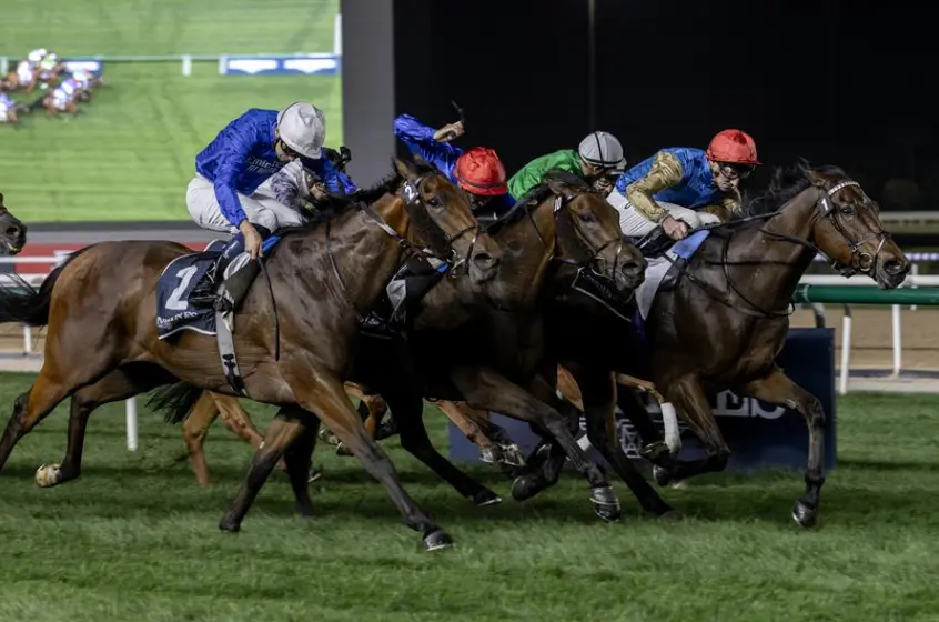 Ruling Dynasty’s previous Meydan win came almost exactly two years ago when he was trained by Charlie Appleby but he made it two at the track in the Longines Primaluna Handicap, over a mile