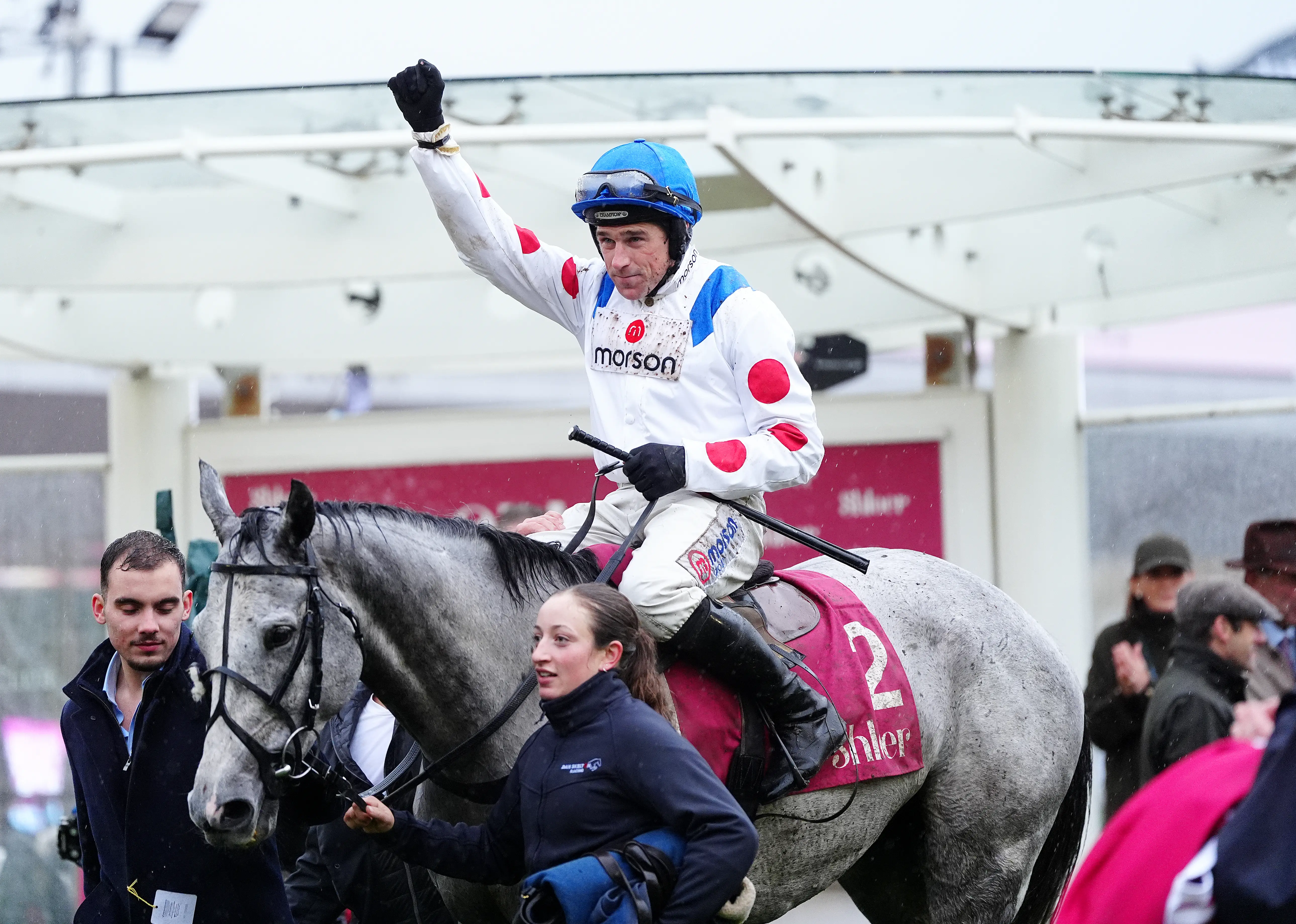 Harry Skelton and L’Eau Du Sud after winning the Shloer Chase (David Davies/The Jockey Club)