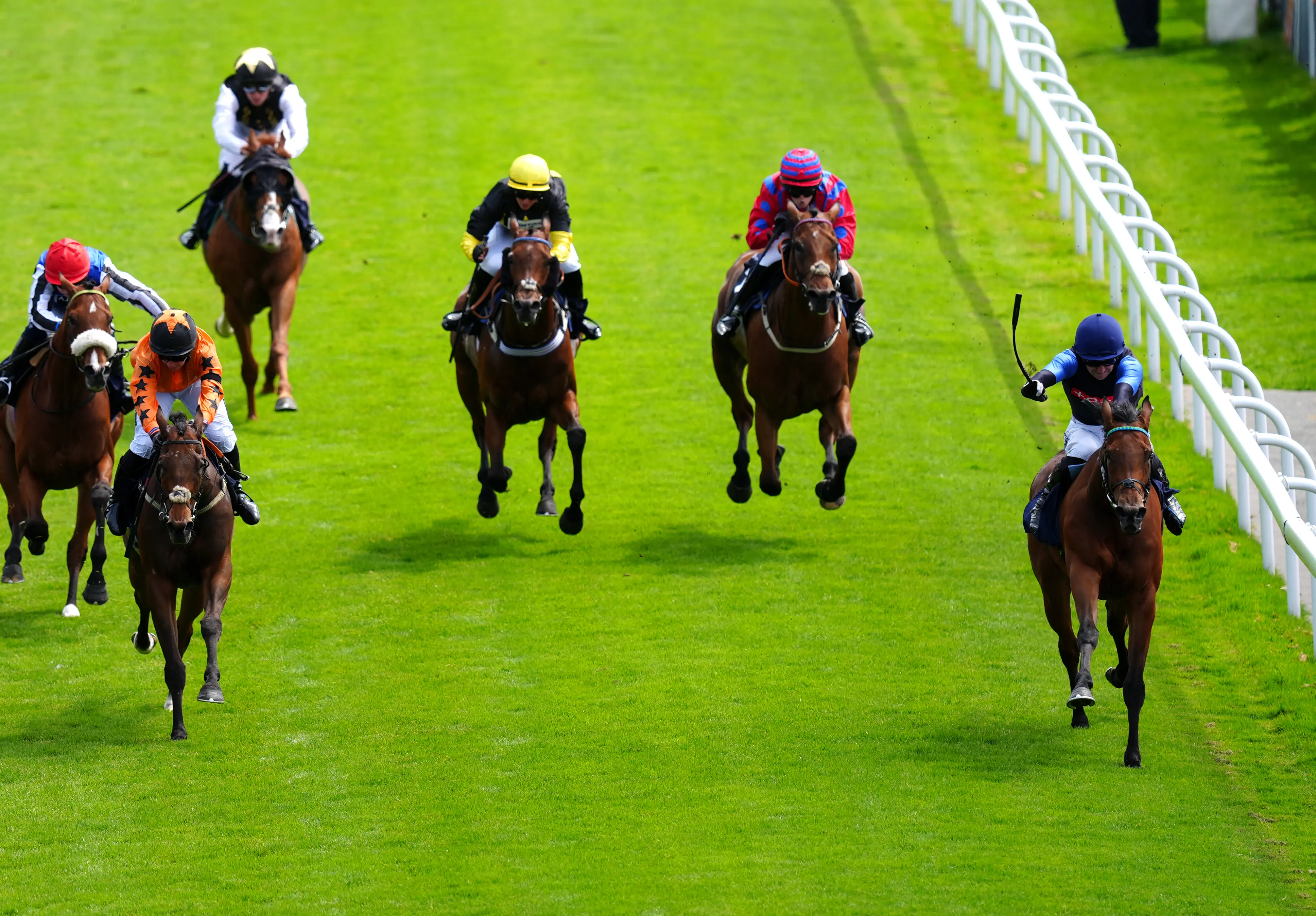 Mullins, who celebrated with a flying dismount, said: “I was wondering if I had kicked too soon and he broke well and I did want to keep my powder dry as long as I could, but then there comes a time where you have to go or you are going to stall and we got home in front – stall one is a massive help here.