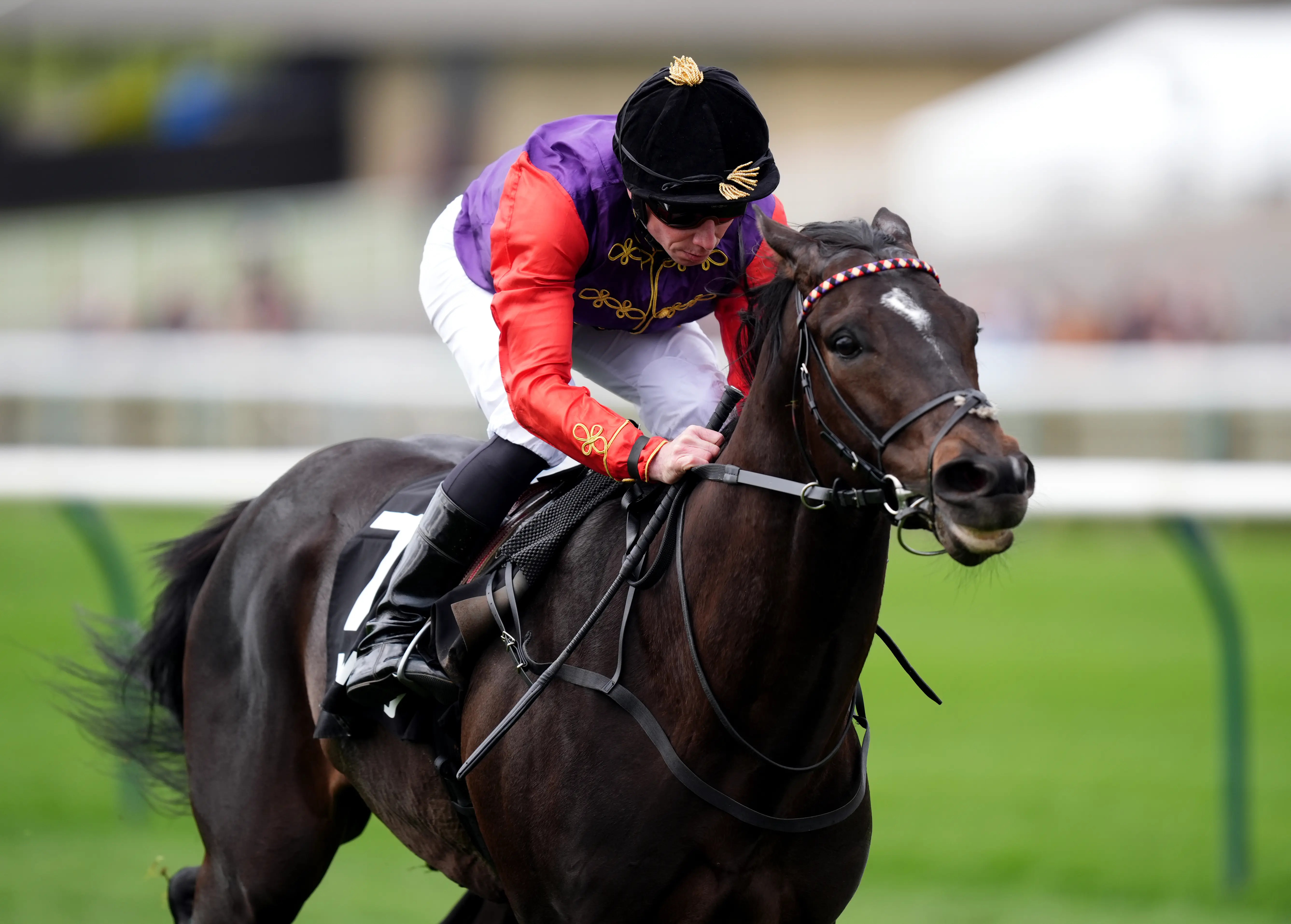 Bred by the King, John and Thady Gosden’s charge was slowly away and looked all at sea during the early stages but started to make inroads on the leaders from halfway and was in front well over a furlong out.