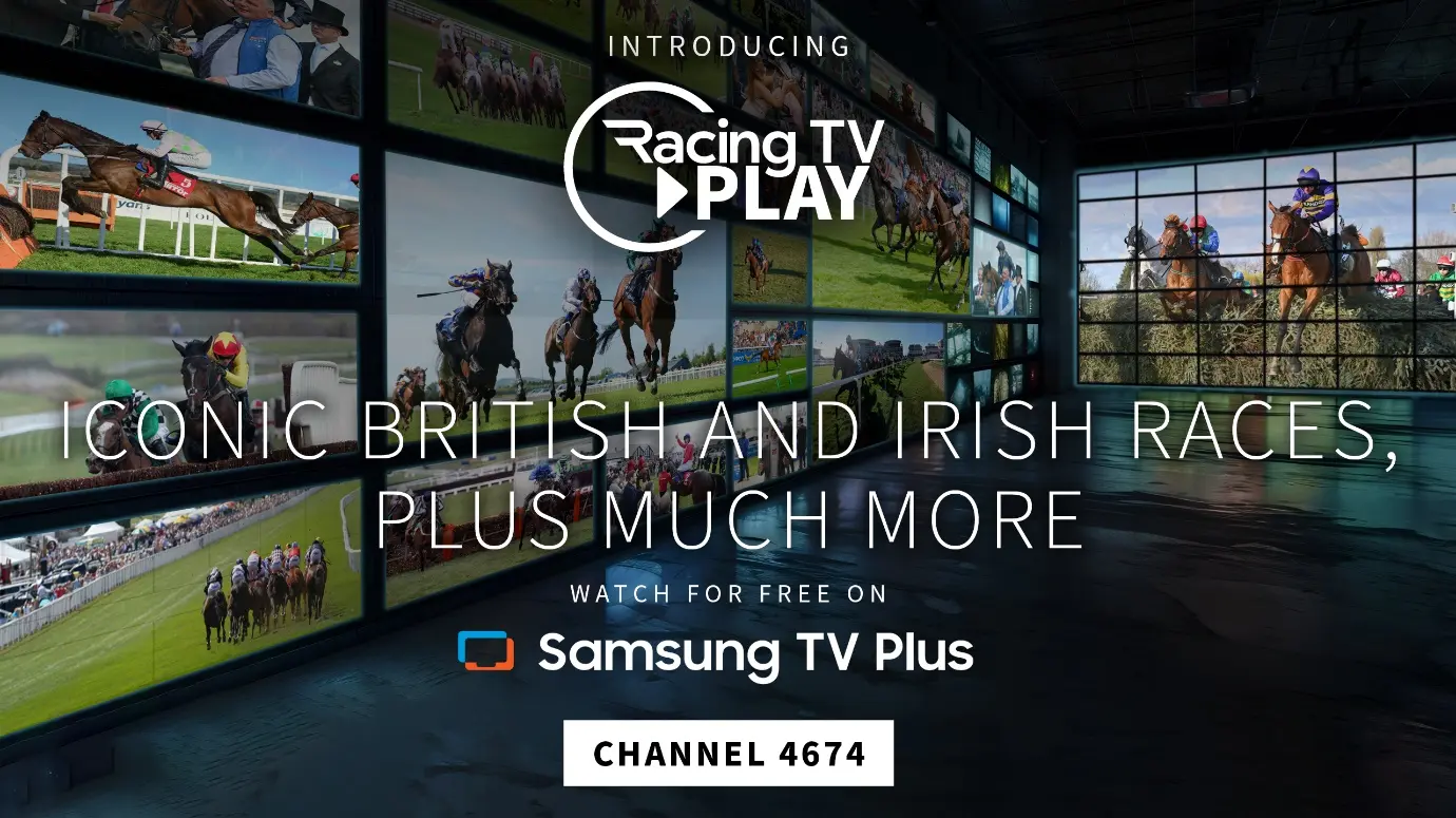 Racing TV Play is the first dedicated horse racing and equestrian channel on Samsung TV Plus in the UK and Ireland. The platform is available on Samsung Smart TVs (made from 2016), and Samsung Galaxy smartphones and tablets.