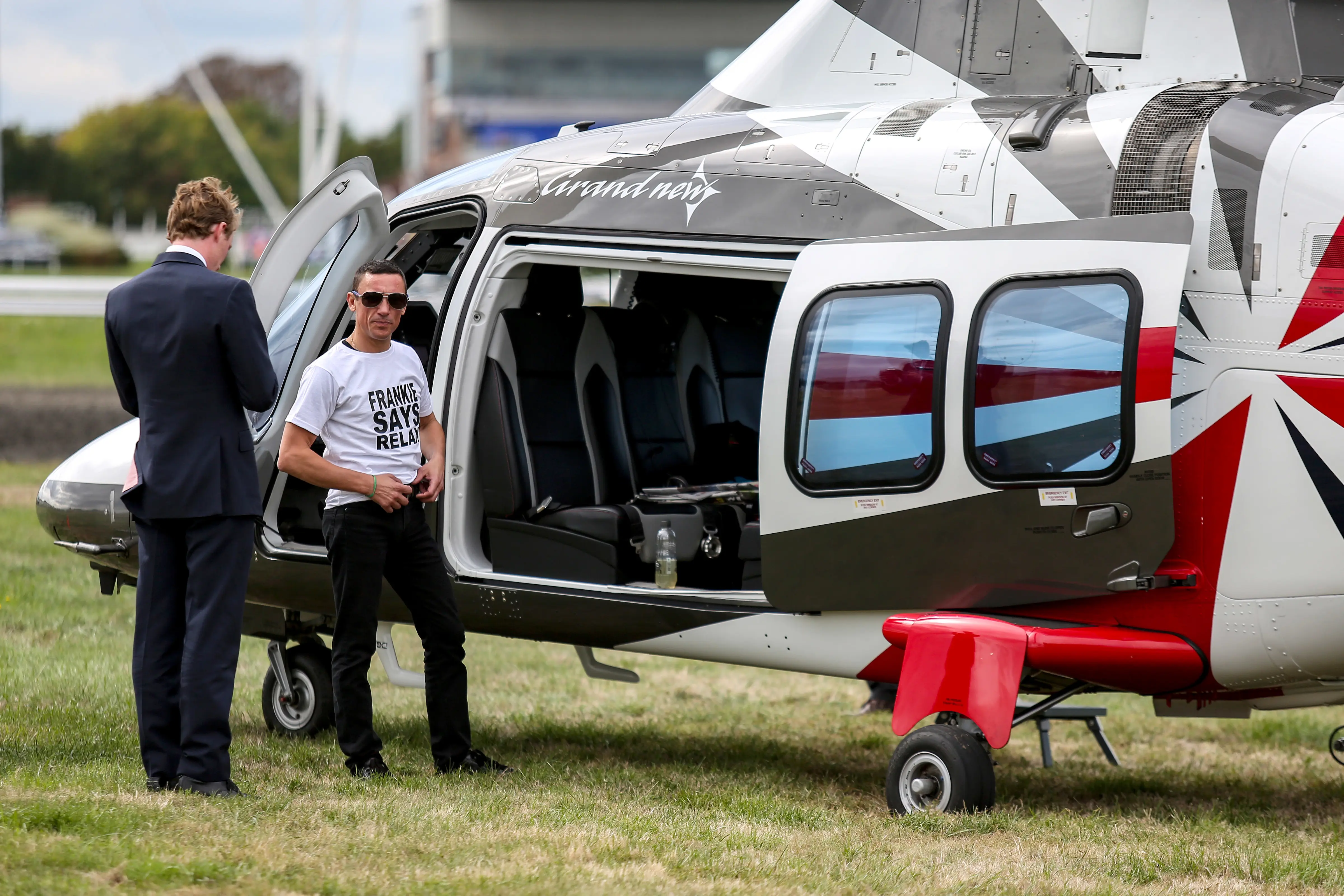 Dettori, who wore a T-Shirt sporting the slogan, "Frankkie Says Relax" had been scheduled to fly in from Kempton after partnering Enable to victory. The helipcopter took off, but moments later it was announced he would miss the ride.
