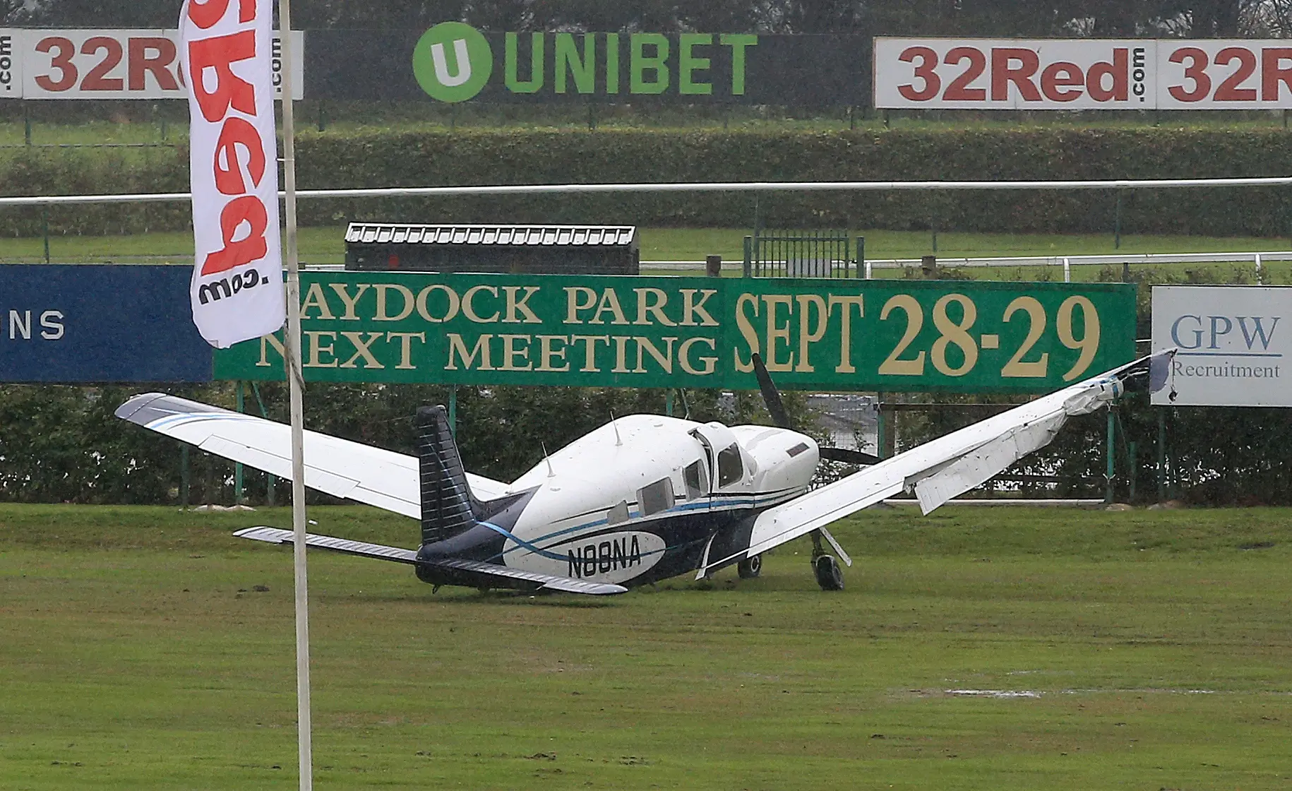 It clipped the wing of a smaller empty plane – one that had been used reportedly by Sir Michael Stoute, Ryan Moore and Gerald Mosse – and skidded on the wet infield at the Merseyside venue.