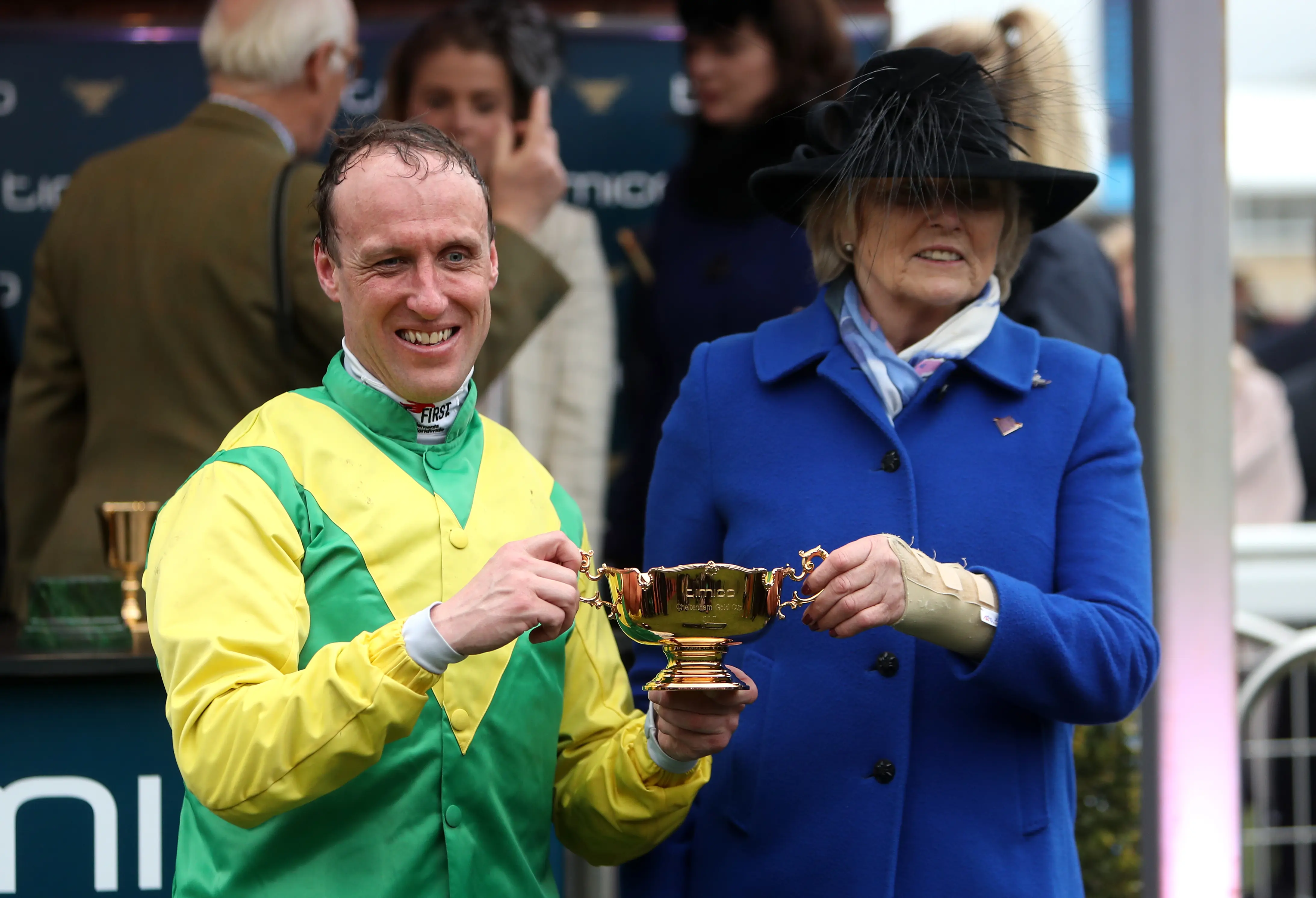 Robbie Power and Jessica Harrington with the Gold Cup (David Davies/PA)