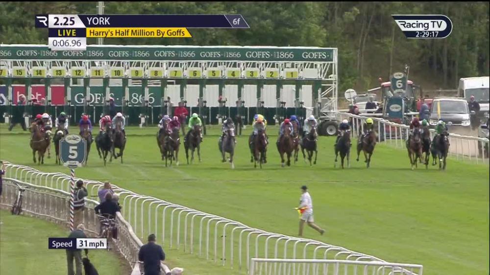 The Middleham Park Racing-owned colt was ridden by Rossa Ryan and settled into a position at the fore of the 21-strong field in the early stages as a 15-2 shot.