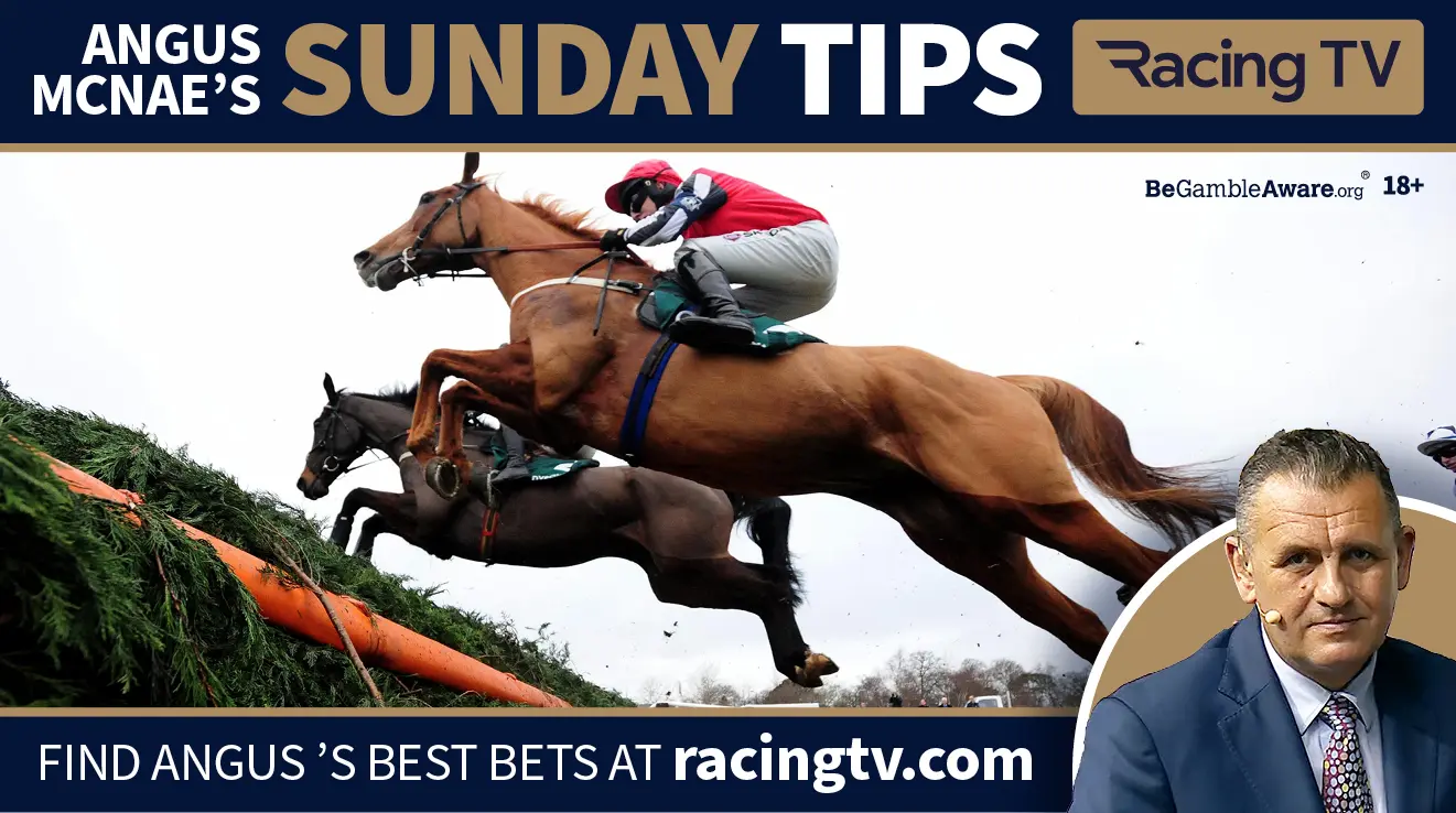 Top analyst and presenter Angus McNae shares his four best bets on Sunday, with selections from both the Curragh and Stratford. Watch every race live on Racing TV.