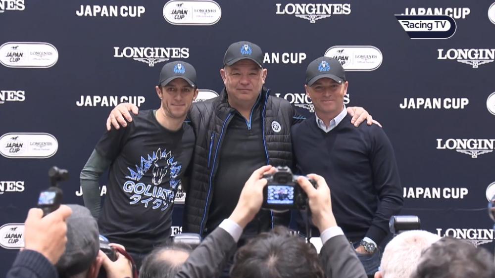 Goliath's connections speak to the press in Tokyo about their pride and joy