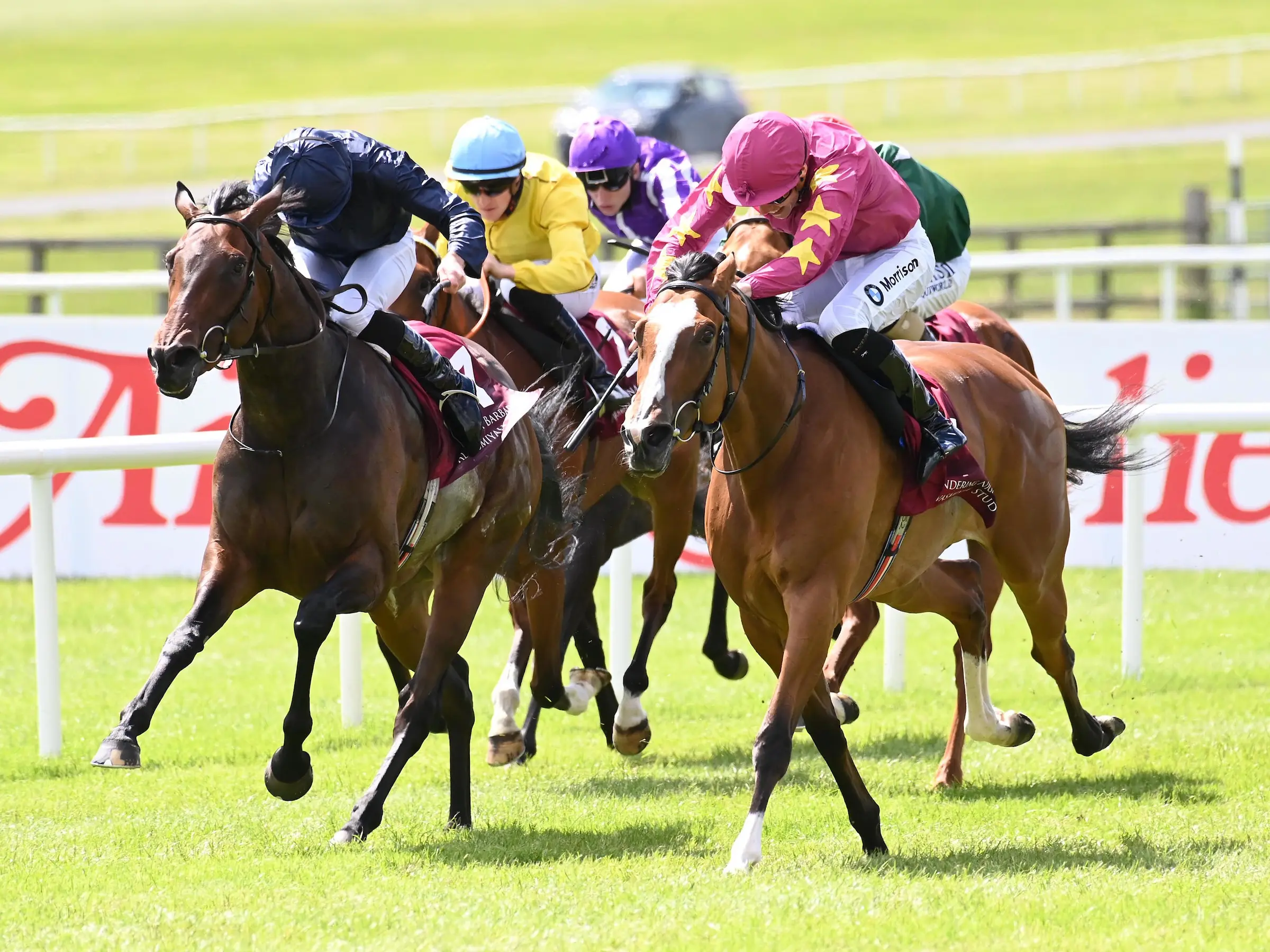 The two were locked together inside the final 100 yards – but in the final few strides Joseph O’Brien’s four-year-old, who was conceding 12lb to her younger rival, just began to pull away and got the verdict by a neck.