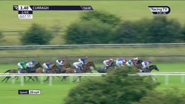Settled behind leaders, 6th halfway, not clear run 2 1/2f out, switched left and ridden 2f out, stayed on to press leaders when leant left into rival 1 1/2f out, challenged over 1f out, no extra and dropped to 3rd closing stages