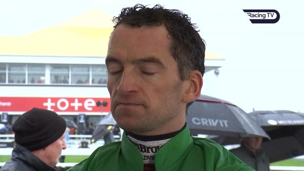 Took keen hold, close up, edged right and awkward 2nd, led approaching 3rd when not fluent, went clear with leaders next, jumped right 5th, went further clear with runner-up approaching 2 out, extended advantage before last, easily