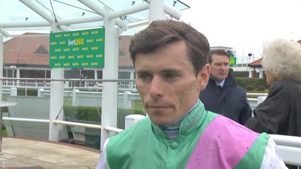 Steadied and switched left start, held up in rear, headway far side rail inside final 2f, chased leaders over 1f out, ridden and went 2nd inside final 110 yards, edged left and kept on same pace, no chance with winner