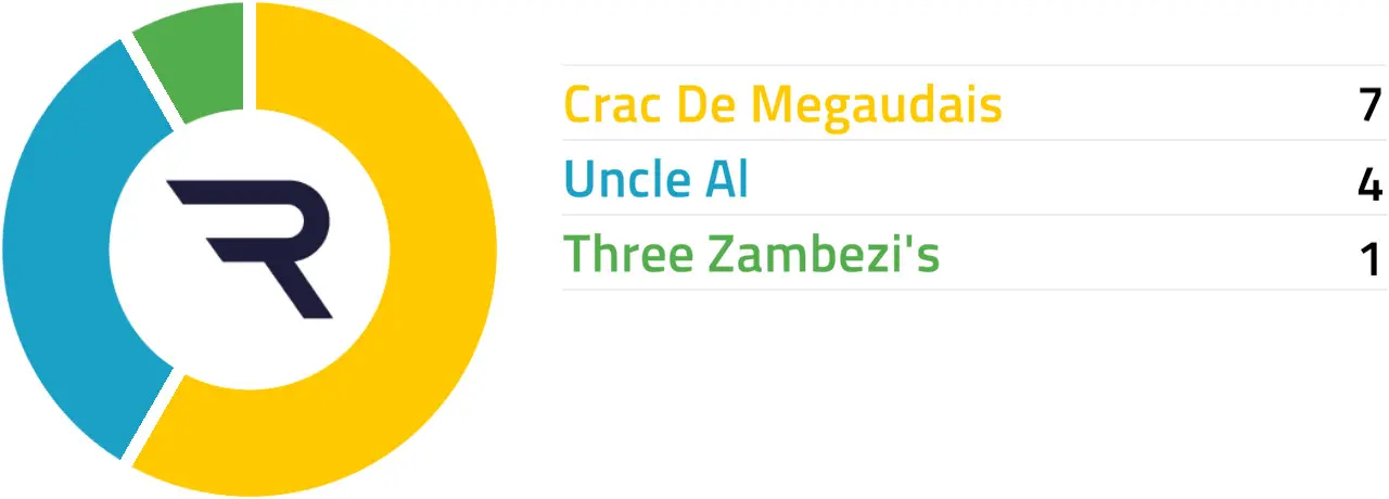 Specific Pace Hint: Three Zambezi's could be expected to race prominently. Of those in the front half of the betting forecast, Crac De Megaudais might be well positioned in a slowly run affair.