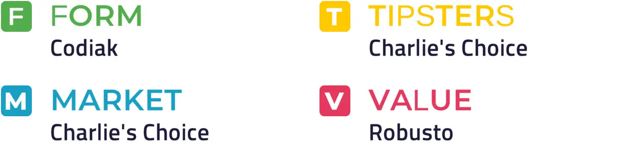 Specific Pace Hint: Robusto could be expected to race prominently. Of those in the front half of the betting forecast, Codiak might be well positioned in a slowly run affair: Of the better-fancied horses, Charlie's Choice is most likely to be ridden furthest from the pace.