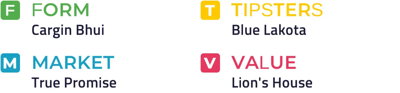 Specific Pace Hint: This could develop into a sprint for home, and True Promise could be well placed to capitalise: Of the better-fancied horses, Kirkdale is most likely to be ridden furthest from the pace.