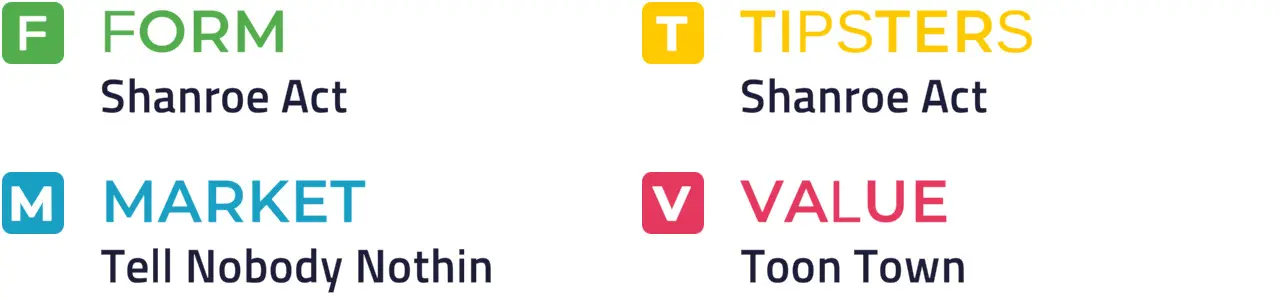 Not as competitive as the numbers suggest and it could be worth siding with recent impressive Fairyhouse hurdling victor SHANROE ACT to make a winning start in this sphere. Catterick runner-up Toon Town seems sure to be on the premises once more, while Elusive Guy is weighted to go well back in this sphere and Bocelli's Voice can't be discounted if on his A-game.