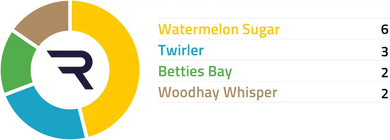 Specific Pace Hint: Betties Bay could be advantaged by a prominent position which looks likely in this field: Of the better-fancied horses, Watermelon Sugar is most likely to be ridden furthest from the pace.