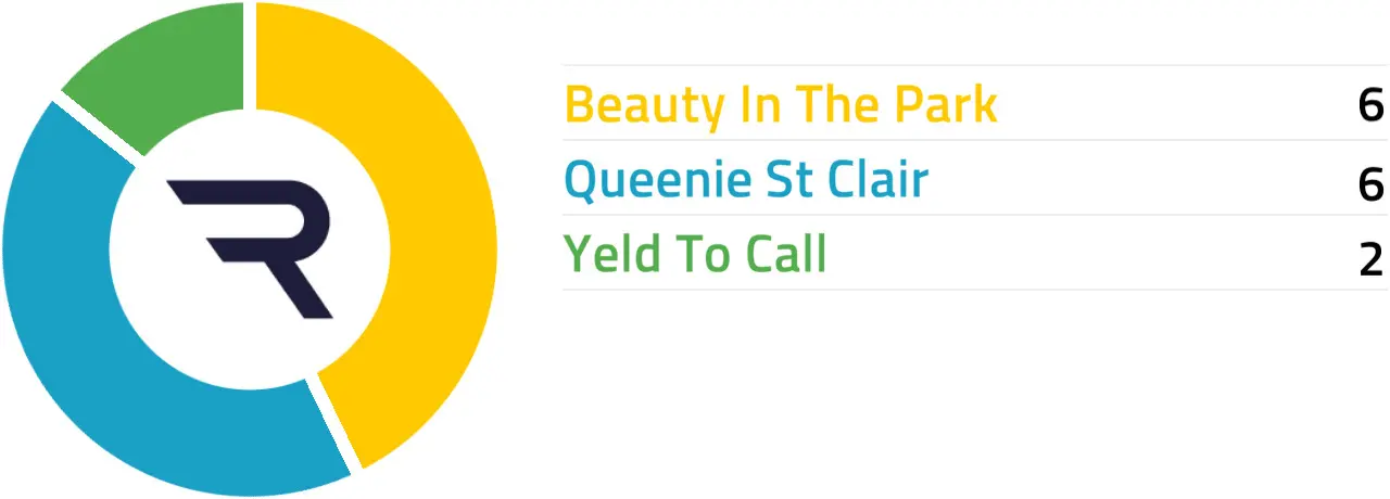 Specific Pace Hint: This could develop into a sprint for home, and Beauty In The Park could be well placed to capitalise: Of the better-fancied horses, Queenie St Clair is most likely to be ridden furthest from the pace.