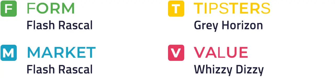 GREY HORIZON hasn't looked back since joining Scott Dixon and is fancied to defy a 6 lb penalty and complete a four-timer at the chief expense of the handily-weighted Moretons who didn't enjoy the rub of the green when sixth here last time out. Flash Rascal, Whizzy Dizzy and Far Too Fizzy all need factoring into this competitive handicap too.