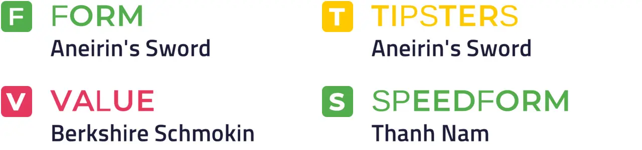 Specific Pace Hint: Berkshire Schmokin could be expected to race prominently. Of those in the front half of the betting forecast, Thanh Nam might be well positioned in a slowly run affair: Of the better-fancied horses, Aneirin's Sword is most likely to be ridden furthest from the pace.
