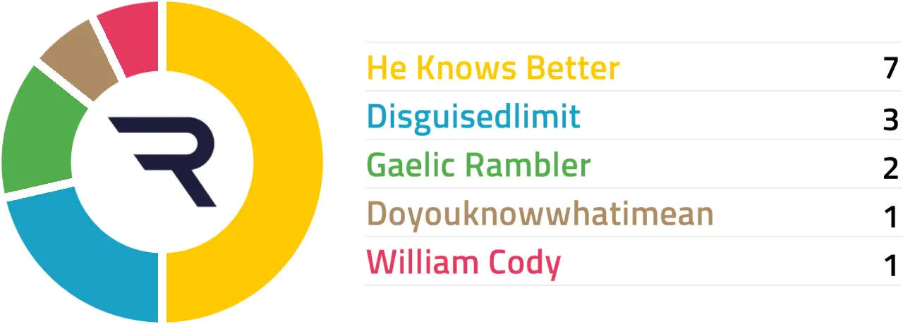 HE KNOWS BETTER boasts some solid form since switching to fences and can get his head in front over the larger obstacles now. Disguisedlimit is another who has taken pretty well to chasing and is second choice ahead of Pam Sly's William Cody.