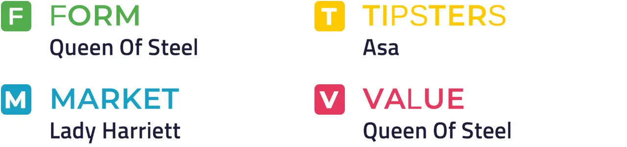 Specific Pace Hint: Innisfree Lass could be expected to race prominently. Of those in the front half of the betting forecast, Queen Of Steel might be well positioned in a slowly run affair: Of the better-fancied horses, Asa is most likely to be ridden furthest from the pace.