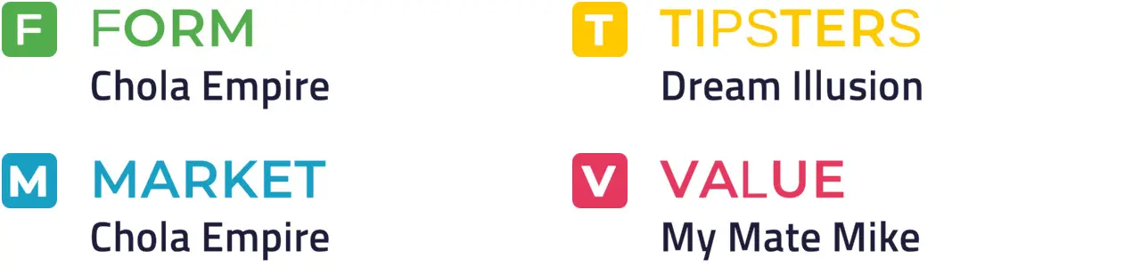 Specific Pace Hint: Of those forecasted with a better chance, My Mate Mike could be most vulnerable in a race in which competition for the lead looks to be fierce: Such a hotly-contested pace as is on the cards here may be to the benefit of Dream Illusion who is likely to make a challenge late.
