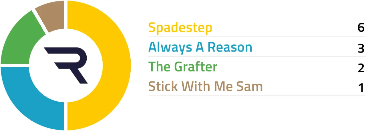 Specific Pace Hint: Spadestep could be expected to race prominently. Of those in the front half of the betting forecast, Stick With Me Sam might be well positioned in a slowly run affair: Of the better-fancied horses, Always A Reason is most likely to be ridden furthest from the pace.
