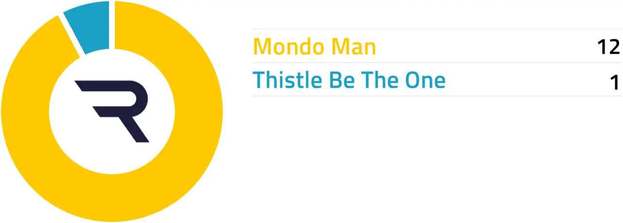 Specific Pace Hint: Thistle Be The One could be advantaged by a prominent position which looks likely in this field: Of the better-fancied horses, Mondo Man is most likely to be ridden furthest from the pace.
