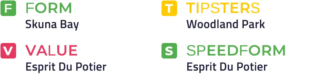 Specific Pace Hint: Skuna Bay could be expected to race prominently. Of those in the front half of the betting forecast, Esprit Du Potier might be well positioned in a slowly run affair: Of the better-fancied horses, Woodland Park is most likely to be ridden furthest from the pace.