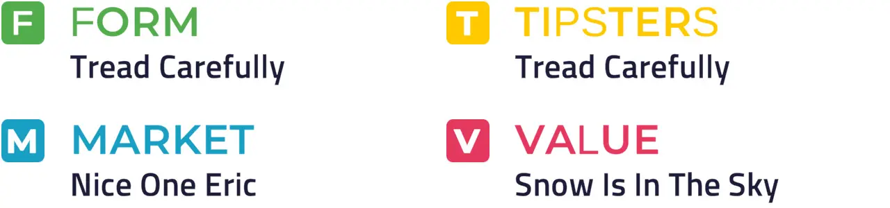 Specific Pace Hint: A decent pace still shouldn’t detract from the chances of those who race on or near the front end such as Tread Carefully: Snow Is In The Sky might not benefit from being ridden as far back as usual for all the gallop is likely to be a reasonable one.
