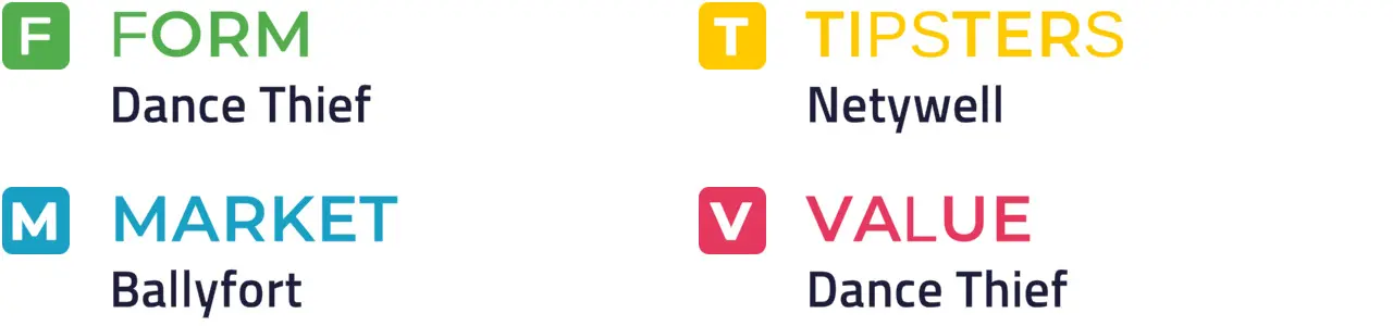 Specific Pace Hint: Don Occhetti could be expected to race prominently. Of those in the front half of the betting forecast, One Mill Harbour might be well positioned in a slowly run affair: Of the better-fancied horses, Ballyfort is most likely to be ridden furthest from the pace.
