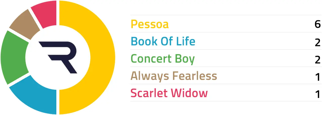Specific Pace Hint: Scarlet Widow could be expected to race prominently. Of those in the front half of the betting forecast, Book Of Life might be well positioned in a slowly run affair: Of the better-fancied horses, Concert Boy is most likely to be ridden furthest from the pace.