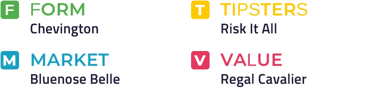 RISK IT ALL has struggled for consistency, but he produced one of his better efforts when runner-up at Fakenham on his most recent outing and could be the answer if backing that up. Chevington clearly isn't the easiest to train but he shaped as if as good as ever when finding only one too strong in a well-run race at Hereford in December and remains low mileage for his age, with Dotties Star completing the shortlist.