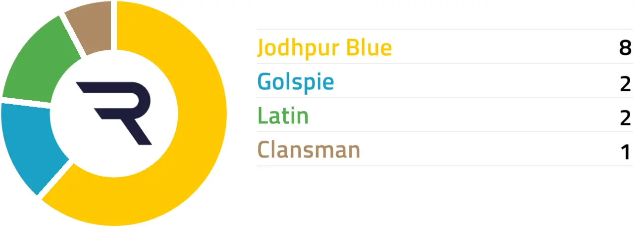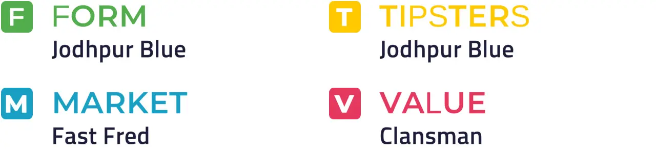 Individual Price Hint: Jodhpur Blue traded at 10% or less of Betfair SP, 25% or less of Betfair SP and 50% or less of Betfair SP on 3 of its last 5 starts: Clansman has traded at 50% or less of Betfair SP twice on its last 5 starts.