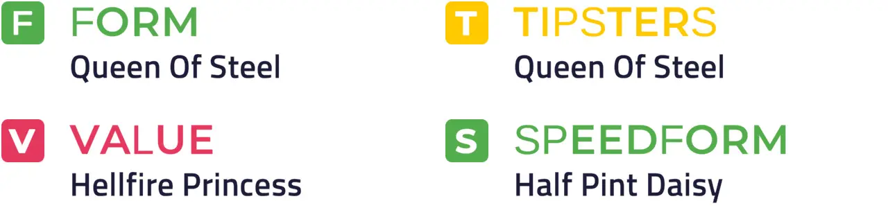 Queen Of Steel She has been running consistently on slow ground all season and was unfortunate to bump into a well-handicapped horse last time. Drop back in trip on testing ground ideal